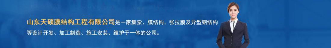 山東天碩膜結(jié)構(gòu)工程有限公司是一家集索、膜結(jié)構(gòu)、張拉膜及異型鋼結(jié)構(gòu)等設(shè)計(jì)研發(fā)、加工制作、安裝維護(hù)于一體的專(zhuān)業(yè)生產(chǎn)廠(chǎng)家。