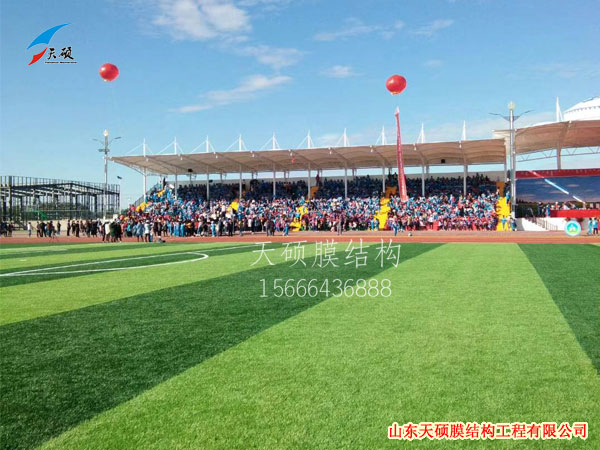 它以其新穎獨特的建筑造型,良好的受力特點,成為大跨度空間結構的主要形式之一。膜結構看臺是一種全新的建筑結構形式,它集建筑學、結構力學、精細化工與材料科學、計算機技術等為一體,具有很高技術含量。其曲面可以隨著建筑師的設計需要任意變化,結合整體環(huán)境,建造出標志性的形象工程。